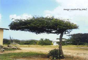 The Divi Divi tree is another typical mark of Aruba. The constant blowing northeast wind forces the tree to grow in a southwestern direction.